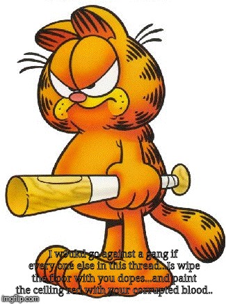 > I w9ukd go against a gang if every one else in this thread...Is wipe the floor with you dopes...and paint the ceiling red with your corrupted blood..
