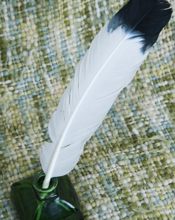 Follow the natural curve of the feather. You want your writing point to aim downward.